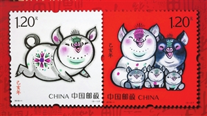 1月5日,中國(guó)郵政發(fā)行《己亥年》特種郵票1套2枚,圖案名稱分別為:肥豬旺福、五福齊聚,全套郵票面值2.40元。另發(fā)行小本票1本,售價(jià)12元。