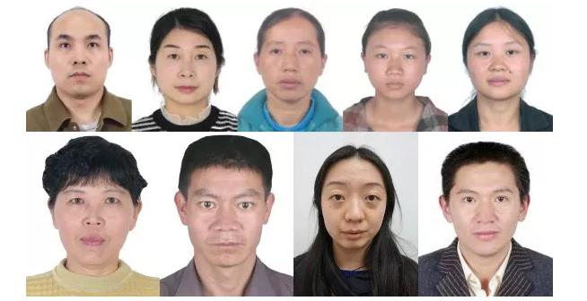 依次為曾佑文(男,31歲,云南昆明人)、杜紅芹(女,32歲,湖北監(jiān)利人)、雷小華(女,48歲,重慶墊江人)、李思嫻(女,24歲,云南昆明人)、錢云貴(女,38歲,云南宣威人)、秦萍(女,58歲,云南昆明人)、唐永昌(男,50歲,云南昆明人)、楊謹睿(女,30歲,云南玉溪人)、周光德(男,41歲,四川資中人);