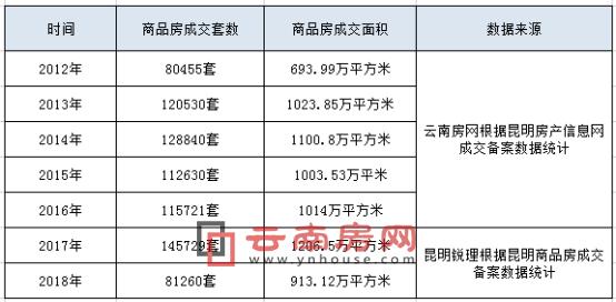 2012年-2018年昆明商品房成交數(shù)據(jù)