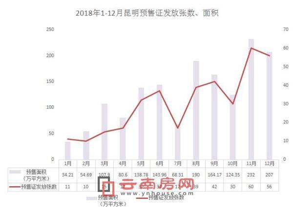 截至2019年1月3日,根據(jù)昆明市房產(chǎn)信息網(wǎng)發(fā)布的數(shù)據(jù)顯示,2018年12月份昆明累計(jì)有和悅銘著、芳華、東聚紫金商務(wù)中心、恒大玖瓏灣、融創(chuàng)昆明文旅城、藍(lán)光林肯公園、春城首府、中梁首府、盛唐城、滇池俊府、中南云境、瑞鼎城等44個(gè)項(xiàng)目獲得56張預(yù)售證。