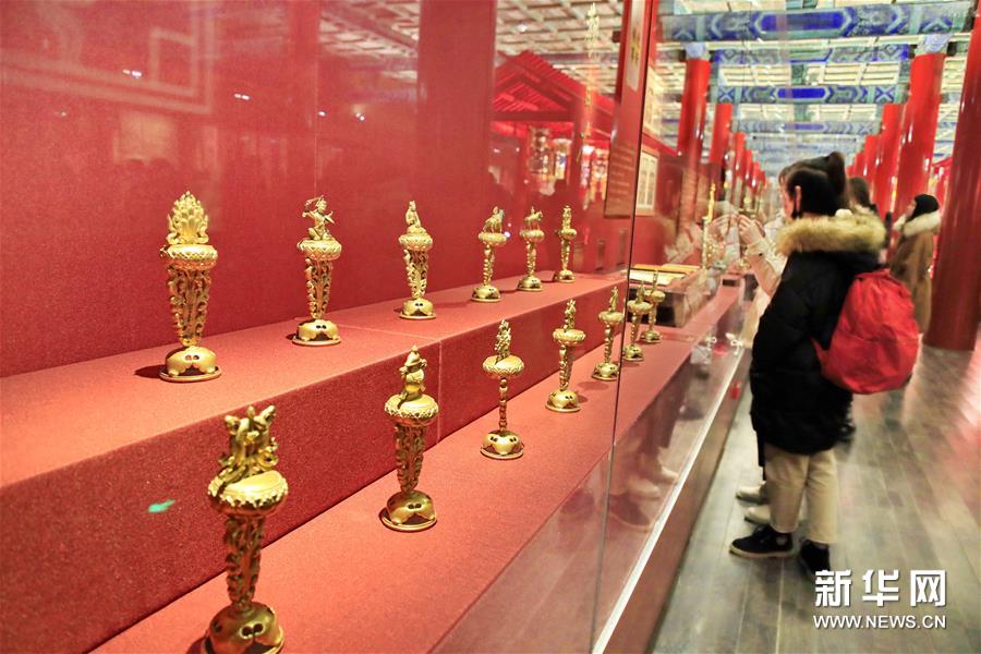 1月6日,觀眾在“賀歲迎祥——紫禁城里過大年”展覽上參觀。新華社記者劉憲國(guó)/攝