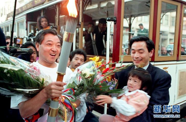 1996年5月3日,許海峰在舊金山參加奧運(yùn)火炬?zhèn)鬟f。新華社 記者宋曉剛/攝