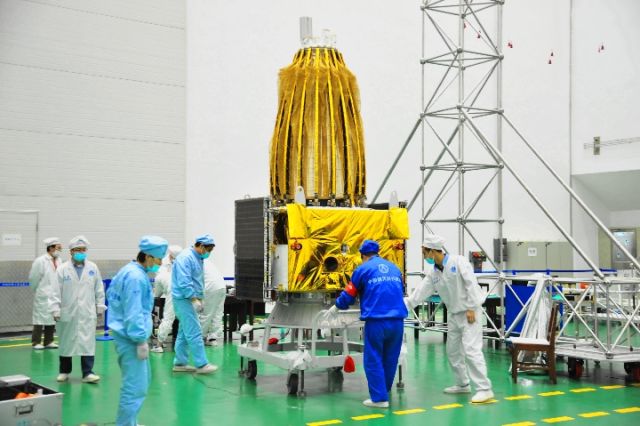 發(fā)射前的鵲橋號中繼衛(wèi)星。(中國航天科技集團(tuán)五院供圖)