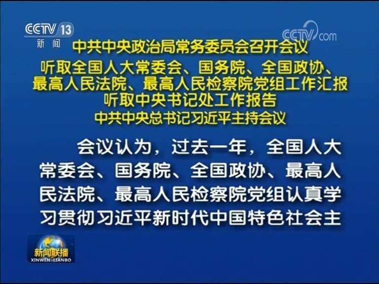 新華社北京1月7日電 中共中央政治局常務(wù)委員會1月7日全天召開會議,聽取全國人大常委會、國務(wù)院、全國政協(xié)、最高人民法院、最高人民檢察院黨組工作匯報(bào),聽取中央書記處工作報(bào)告。中共中央總書記習(xí)近平主持會議并發(fā)表重要講話。
