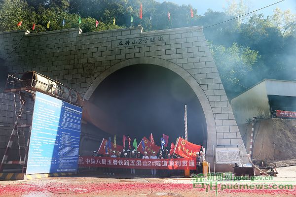 “開挖!”1月6日下午4點(diǎn),隨著現(xiàn)場指揮一聲令下,隧道深處傳來隆隆的機(jī)械轟鳴聲,玉磨鐵路站前13標(biāo)段五屏山2號雙線隧道宣告順利貫通。這也是2019年伊始,玉磨鐵路普洱段境內(nèi)第一座貫通的隧道。