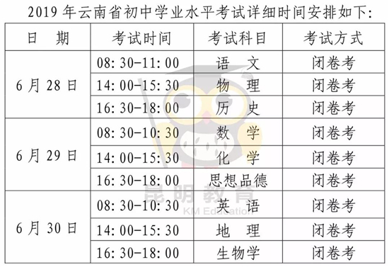 昆明信息港訊(昆明日?qǐng)?bào) 記者楊定嘉) 從云南省招生考試院獲悉,2019年初中學(xué)生學(xué)業(yè)水平考試將于6月28日至7月2日舉行。昆明市、曲靖市抽考科目為數(shù)學(xué)和地理。