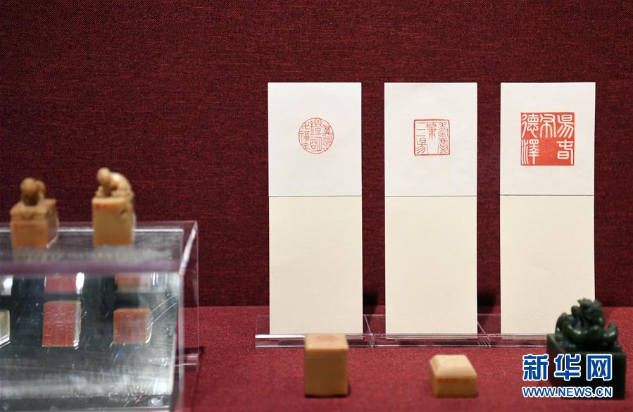 這是展出的賀歲吉語組印(1月7日攝)。新華社記者 金良快/攝