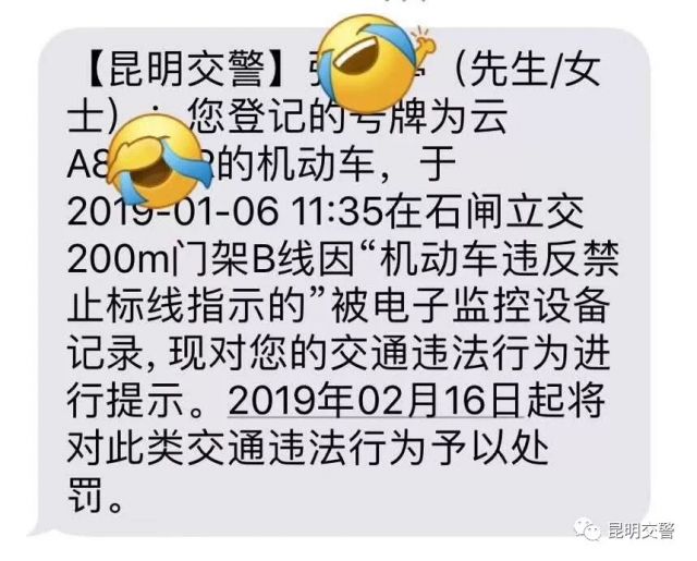 2018年12月28日至2019年2月15日為教育期,對(duì)相關(guān)交通違法昆明交警將會(huì)以短信通知等方式告知違法駕駛員并進(jìn)行提醒;