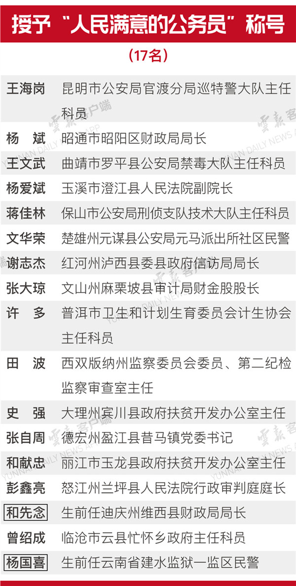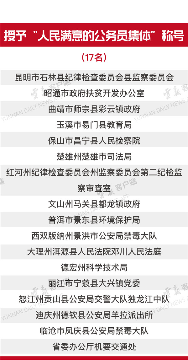 云南省第六屆人民滿意的公務(wù)員、人民滿意的公務(wù)員集體