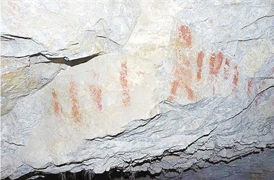 梅龍達(dá)普洞內(nèi)的紅色巖畫