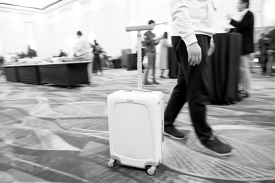 靈動科技有限公司的工作人員展示智能隨身行李箱。新華社發(fā)