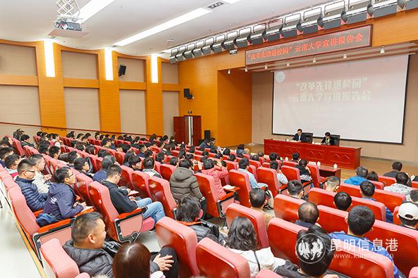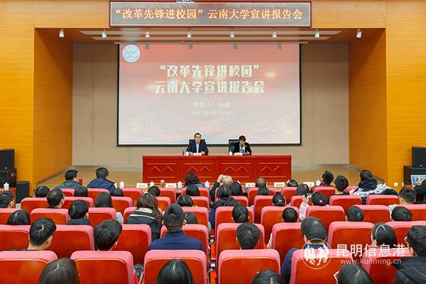 昆明信息港訊 記者李麗朱 1月10日,由中共中央宣傳部、教育部、共青團(tuán)中央主辦的“改革先鋒進(jìn)校園”活動(dòng)云南省首場(chǎng)宣講報(bào)告會(huì)走進(jìn)云南大學(xué)。改革先鋒宣講團(tuán)成員葉聰向師生代表作題為《將深潛進(jìn)行到底》的宣講報(bào)告。