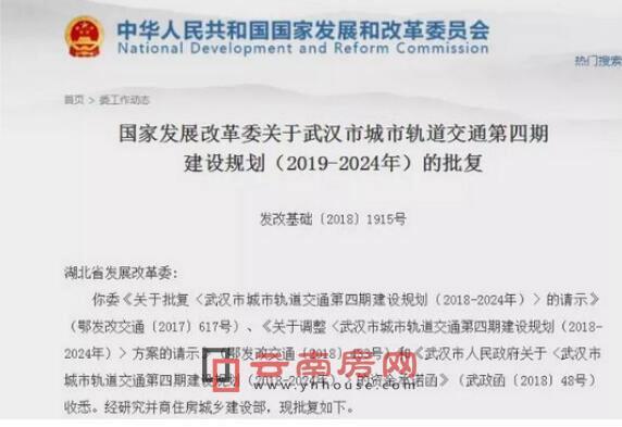 2019年1月4日,國家發(fā)改委網(wǎng)站發(fā)布了《關于武漢市城市軌道交通第四期建設規(guī)劃(2019-2024年)的批復》,批復同意武漢市城市軌道交通第四期建設規(guī)劃,新批復地鐵項目4個,總長81.7公里。這也是去年7月國家發(fā)改委重新啟動了地鐵規(guī)劃審批工作后,繼杭州、重慶、長春、蘇州、上海、濟南之后第7個獲批新一輪地鐵建設的城市。