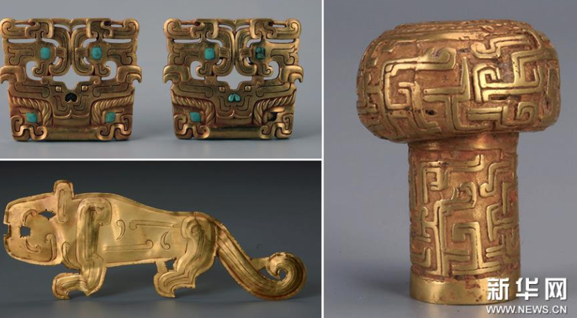 ?陜西澄城縣劉家洼東周遺址大墓出土的金器(拼版資料照片)。