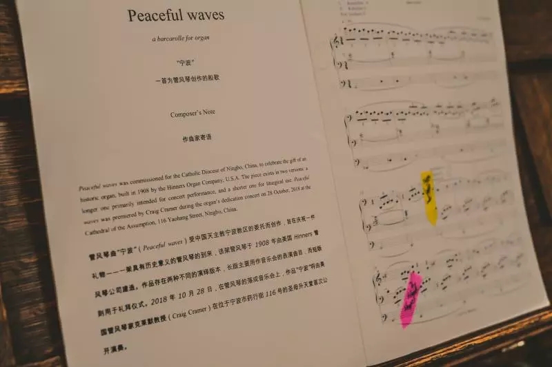 報道稱,在最近舉辦的管風琴落成音樂會上,美國諾特丹大學管風琴教授克雷格?克萊默(Craig Cramer)演奏了一曲《寧波》,曲名取意寧靜的波濤,這是荷蘭作曲家亞當?華姆斯(Ad Wammers)專門為此創(chuàng)作的一首曲子。