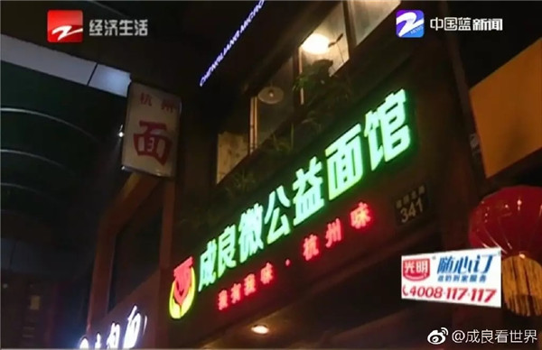 2013年,這家店開業(yè)了,店門口貼了一句話:當(dāng)您遇到困難時(shí),可以在成良面館免費(fèi)吃上一碗熱氣騰騰的面。