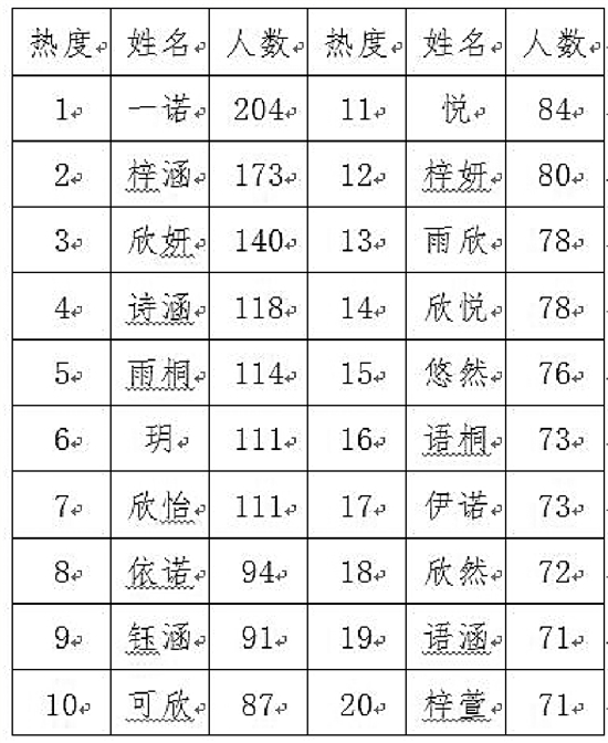 2018年杭州新生兒名字熱度榜昨天出爐