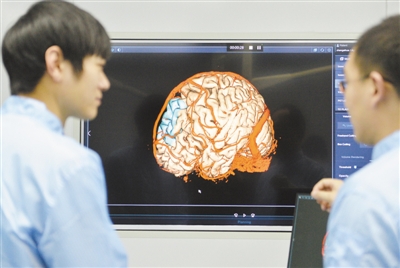 科研人員演示獲得科技部重點研發(fā)計劃支持的神經(jīng)外科手術(shù)導航項目。本報記者洪星/攝