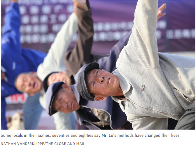 報(bào)道稱,玉狗梁村地處張家口市張北縣,地理位置較偏,屬于貧困村。村里僅有100來名常住居民,而且大部分都是些老人家。但是一大清早,就有30多人裹著外套、迎著初升的太陽來到村廣場(chǎng)。他們?cè)趶V場(chǎng)上集合,沿著廣場(chǎng)四周排成隊(duì),然后做起了瑜伽——屈膝下蹲、伸出手臂,站在磚塊上保持平衡。大部分人每天要練兩次,每次一個(gè)小時(shí)。