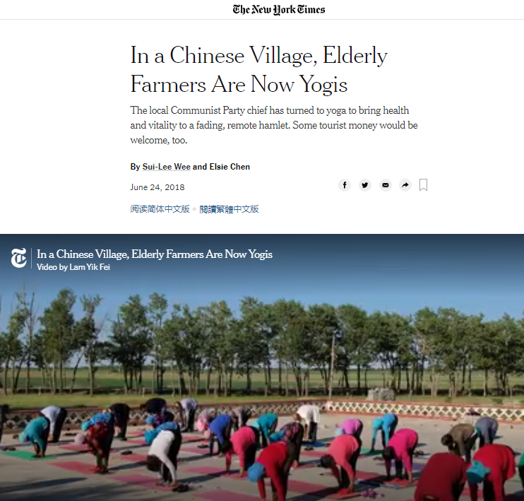 其實(shí),美國(guó)《紐約時(shí)報(bào)》網(wǎng)站早在去年就曾報(bào)道過玉狗梁村村民練瑜伽的故事。報(bào)道稱,玉狗梁村留守村民平均年齡為65歲,他們以養(yǎng)牛放羊以及耕種小塊土地為生。這個(gè)逐漸老齡化的小村莊需要活力和激情。村干部盧文震為此提出了一個(gè)大膽的計(jì)劃,讓村民們練瑜伽。而在瑜伽的作用下,村民們節(jié)省了醫(yī)療費(fèi)用。玉狗梁也因此受到了中國(guó)各大媒體的廣泛關(guān)注。盧文震說,他希望借關(guān)注度的提升吸引更多游客。