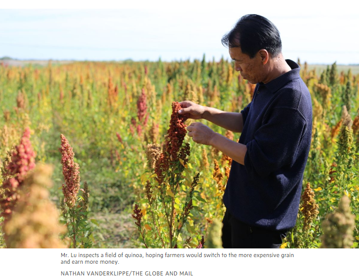 盧文震說服村民種植藜麥,以增加收入。圖片來源:《環(huán)球郵報(bào)》網(wǎng)站報(bào)道截圖