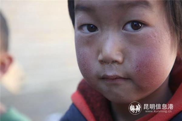 祿勸彝族苗族自治縣豐租小學(xué)孩子皸裂臉蛋 資料圖片