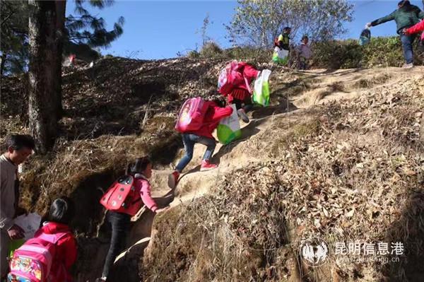 孩子們開(kāi)心的提著“愛(ài)心清潔包”翻越大山回家 資料圖片