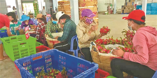在越南胡志明市,廣州果裔商貿(mào)有限公司(以下簡稱果裔商貿(mào))分公司的火龍果加工工廠里,一批填補中國生產(chǎn)淡季的火龍果正在被分揀、清洗、吹干、包裝,準備運往中國,其中一部分將運往云南市場。