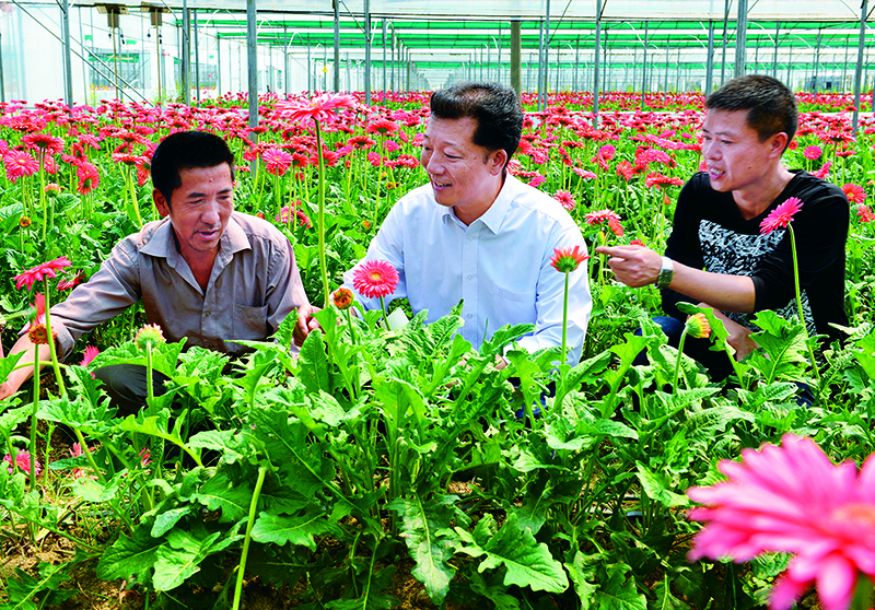 2014年4月18日,時任福建省政和縣縣委書記廖俊波(中)在該縣鐵山鎮(zhèn)東澗村向花農(nóng)了解花卉生產(chǎn)情況。廖俊波同志生前是福建省南平市委常委、副市長,武夷新區(qū)黨工委書記,2015年6月被中央組織部授予“全國優(yōu)秀縣委書記”稱號。2017年3月18日,廖俊波同志在趕往武夷新區(qū)主持召開會議途中不幸發(fā)生車禍,因公殉職。廖俊波同志任職期間牢記黨的囑托,盡心盡責(zé),帶領(lǐng)當(dāng)?shù)馗刹咳罕姄湎律碜印⒖喔蓪嵏?,以實際行動體現(xiàn)了對黨忠誠、心系群眾、忘我工作、無私奉獻的優(yōu)秀品質(zhì)。 新華社發(fā) 徐庭盛/攝
