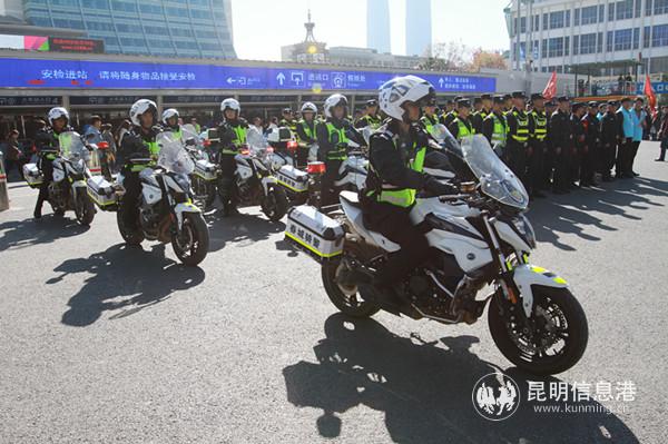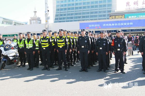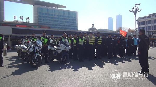 昆明信息港訊 記者合宇聰 1月17日下午,昆明市公安局官渡分局北京路派出所在昆明火車站舉行“2019年春運安?!惫ぷ鲉觾x式,正式拉開2019年春運安保工作序幕。