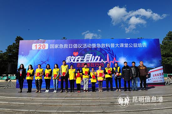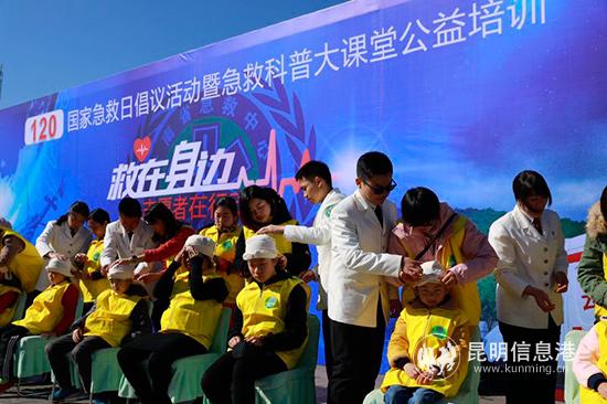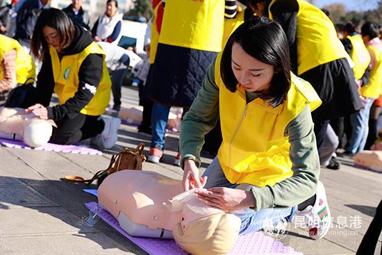 昆明信息港訊 記者張子源 為宣傳急救知識和技能,加強市民對120院前急救工作的了解,1月20日,“救在身邊 志愿者在行動”急救日主題活動在西山區(qū)碧雞廣場舉辦。