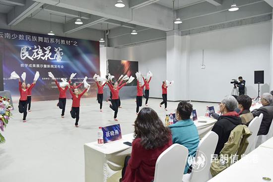 昆明信息港訊 記者勞學(xué)麗 1月20日下午,《云南少數(shù)民族舞蹈系列教材》之“民族花蕾”教學(xué)成果展示暨新聞發(fā)布會(huì)在昆明舉行。發(fā)布會(huì)現(xiàn)場(chǎng),唐鏞教學(xué)團(tuán)隊(duì)代表對(duì)《云南少數(shù)民族舞蹈系列教材》“民族花蕾”教學(xué)體系的基本情況進(jìn)行了介紹,同時(shí)還展示了此前完成的教學(xué)案例。