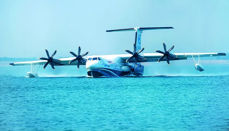 我國(guó)航空制造不斷推動(dòng)實(shí)現(xiàn)高質(zhì)量發(fā)展。圖為2018年10月20日,中國(guó)自主研制的大型水陸兩棲飛機(jī)——“鯤龍”AG600成功實(shí)現(xiàn)水上首飛,中國(guó)大飛機(jī)邁出“上天入?!蓖暾椒ァ?新華社 記者熊琦/攝