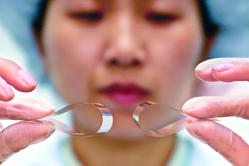 中國(guó)在供給側(cè)結(jié)構(gòu)性改革中握緊“先進(jìn)制造”鑰匙,推動(dòng)經(jīng)濟(jì)高質(zhì)量發(fā)展。圖為秦皇島星箭特種玻璃有限公司的工人在檢查高強(qiáng)度柔性抗輻照玻璃蓋片的質(zhì)量,該公司產(chǎn)品先后用于神舟、嫦娥、天宮等衛(wèi)星與航天器上。 新華社 記者楊世堯/攝