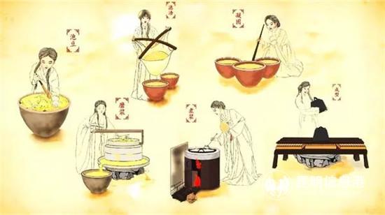 豆腐,是“一輪磨上流瓊液,百沸湯中滾雪花”的美麗。整個過程自然流暢,又精細(xì),帶著時間沉淀的美妙味道,煥發(fā)出新的生命力。