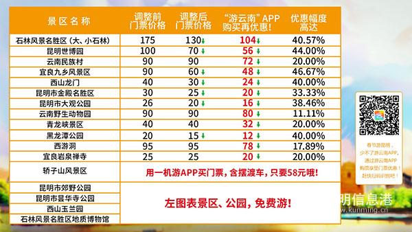 “一部手機游云南”作為云南智慧旅游平臺,在昆明旅游市場上已經(jīng)起到了不可替代的作用。春節(jié)期間,各大旅游景區(qū)景點將在游云南APP上提供優(yōu)惠票價。石林風景名勝區(qū)與地質(zhì)博物館在價格調(diào)整后,游云南APP購買僅104元,優(yōu)惠幅度高達40%。另外昆明世博園、云南民族村、宜良九鄉(xiāng)、西山龍門、大觀公園、青龍峽等多家景區(qū)均提供了大幅優(yōu)惠。市民及游客通過游云南APP購買景區(qū)門票,將在降價后的基礎(chǔ)上再行優(yōu)惠20%,優(yōu)惠幅度大,給游客真正的實惠。