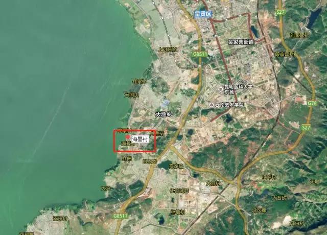 海晏村隸屬昆明市呈貢區(qū)大漁街道,距離中心城區(qū)30公里,位于環(huán)湖東路以西。古村東面及南面環(huán)繞群山,西面是開闊的滇池湖景,隔湖相望西山為屏。