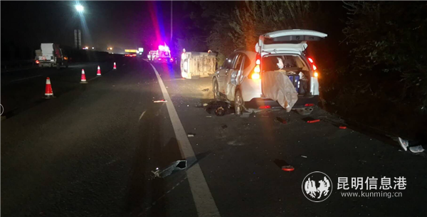 昆明信息港訊 實(shí)習(xí)記者周然 據(jù)云南省公安廳交警總隊(duì)高速公路交巡警支隊(duì)消息,1月22日21:00位于昆楚高速楚雄方向k22公里處發(fā)生兩車(chē)相撞事故。由于需要現(xiàn)場(chǎng)勘察和搶救傷員,暫時(shí)封閉右側(cè)慢車(chē)道及應(yīng)急車(chē)道。請(qǐng)過(guò)往此路段的車(chē)輛、駕駛者注意減速避讓,并服從現(xiàn)場(chǎng)人員交通指揮。