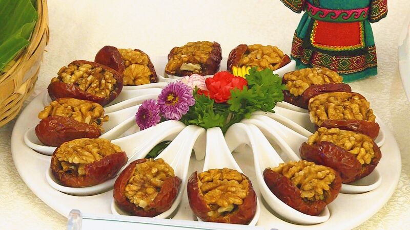 核桃作為特色鮮明的食材,獨特的口味一直吸引著人們的味蕾。用彝家大山核桃做成的彝族土司核桃宴,把核桃歷史文化與彝族飲食文化相結合,通過花色多樣的烹飪方式將核桃風味融入其中,一菜一品皆有核桃,這是彝家人從“吃”中激發(fā)出的智慧。