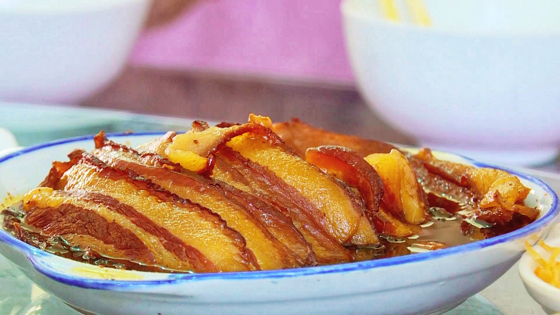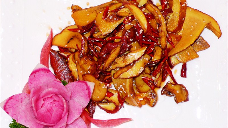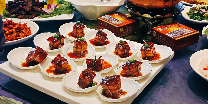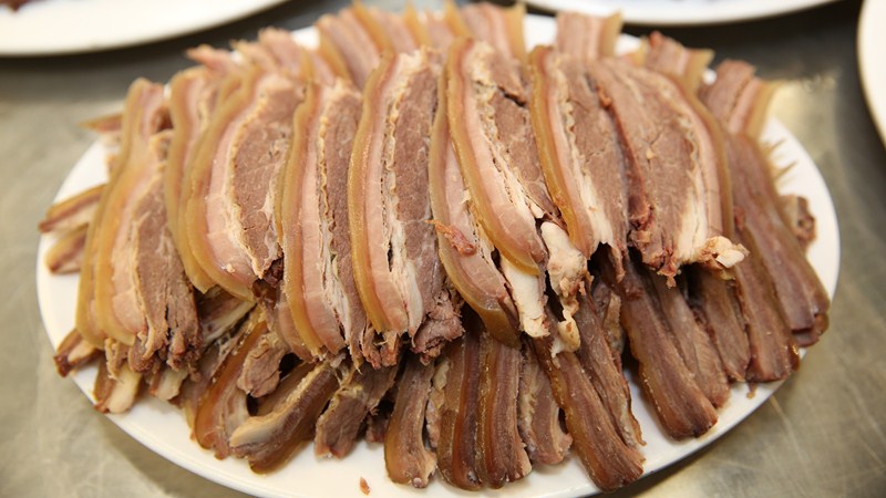 沙橋第二絕為千張肉。沙橋千張肉不用紅糖或白糖著色,而是涂抹當地產的高寒山區(qū)冬季土蜂蜜,果糖含量特別高,用如此原料做出的千張肉更味美。