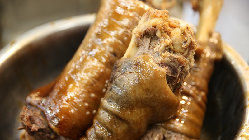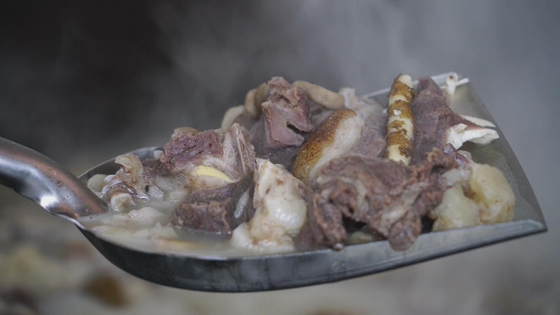 人說“天上龍肉、地上驢肉”,牟定的驢肉以“超群驢肉”為代表,有火鍋、鹵涼、油炸、火燒、醬肉、腌驢肉干巴等多個品種。最出名的驢肉湯鍋,用炭火煮肉加20多種原料慢熬成鮮香濃純的“高湯”,再把挑選出來的新鮮腿骨肉、軟肋條用大火快煮,調汁后放入湯筒小火慢燉制成湯汁濃厚、色澤金黃的鹵肉,最終配成一鍋味香濃郁、口感獨特的超群驢肉。