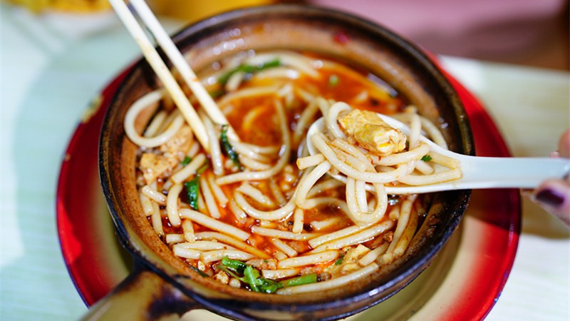 姚安臭豆腐砂鍋米線選用姚安臭豆腐作為原材料,加上水嫩的姚安粗米線、豆醬、韭菜、醬油等,用特制的砂鍋和上等的清泉水烹煮,是姚安一道家喻戶曉的特色小吃。