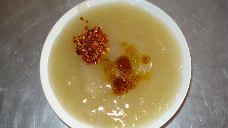 宜就涼粉,和別處做法不同,是用手工石磨磨制而成。這樣做出的涼粉,嚼到嘴里既細嫩潤滑又很有韌勁,且保留了稻米的香味。