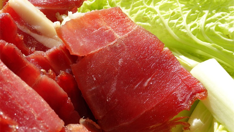 在云南高寒山區(qū),農村里都有個習慣,把牛羊趕到草坡面積遼闊、長滿野生豬草的山上放牧的同時,把豬也一起趕到山上放養(yǎng)。當地喂養(yǎng)的豬多以玉米、野豬草為食,因而,山豬被人們譽為“喝的是山泉水、吃的是中草藥、長的是健康肉”。山豬耐寒,肌肉結實飽滿,精肉豐滿,是腌制火腿的最佳原料。武定山豬火腿,海拔2400米的深山經1200天的自然發(fā)酵,可謂是“集天地之靈氣、 日月之精華”,因而味道鮮美,肉嫩味佳。
