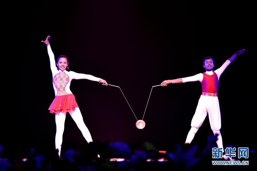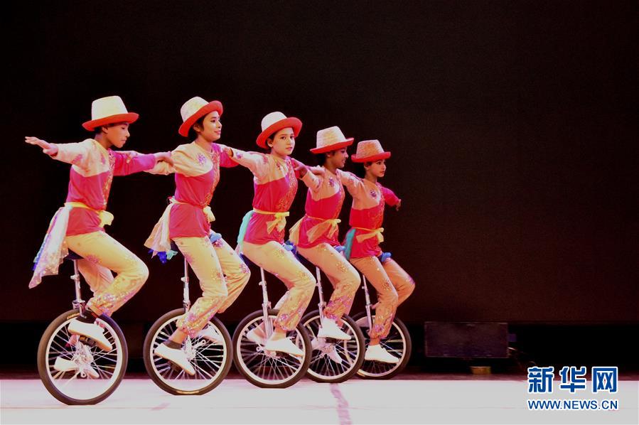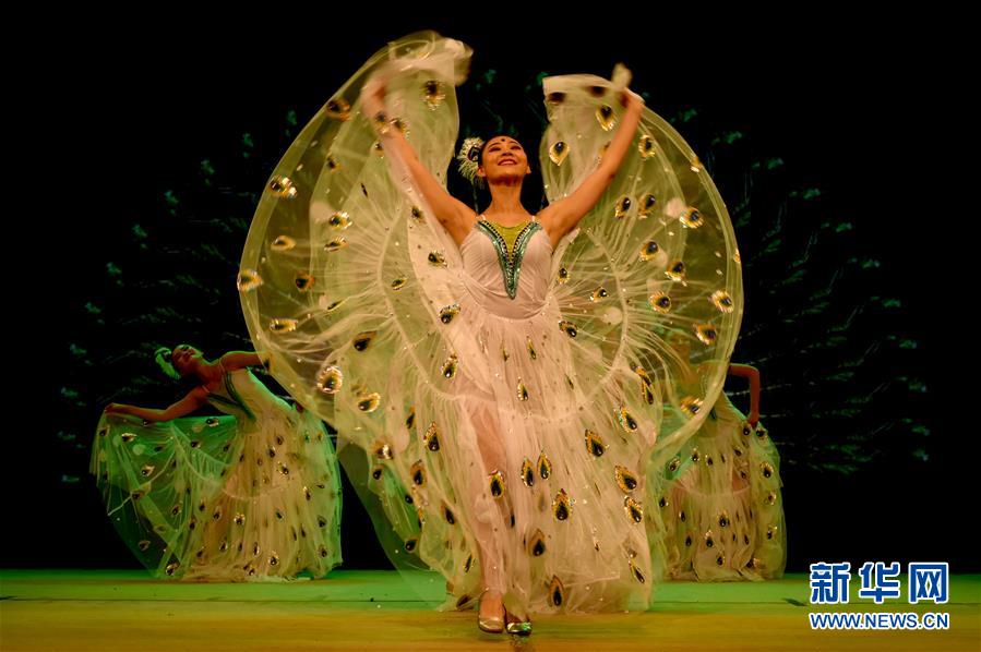 1月17日,云南文化藝術(shù)團演員在表演舞蹈。 1月17日晚,2019“歡樂春節(jié)”演出在孟加拉國首都達卡舉行。中孟兩國演員同臺獻藝,舞蹈、雜技等精彩節(jié)目受到觀眾歡迎。 新華社發(fā)(薩利姆·禮薩/攝)
