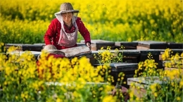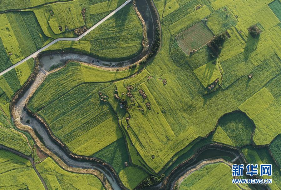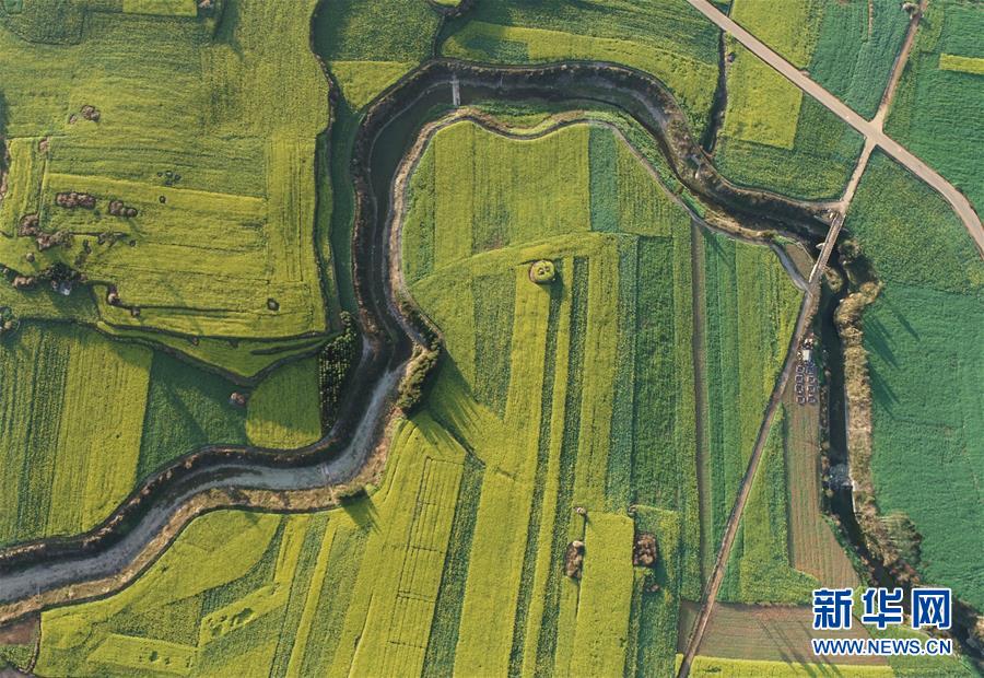 大寒時(shí)節(jié),云南省羅平縣種植的油菜花開(kāi)放,鮮艷的色彩在田野中鋪陳開(kāi)來(lái),透出春意。