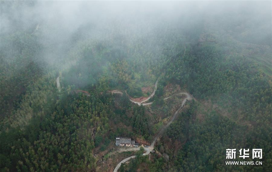 位于龍泉市牛頭嶺村群山之中的“七分醉”工作室(1月15日無人機拍攝)
