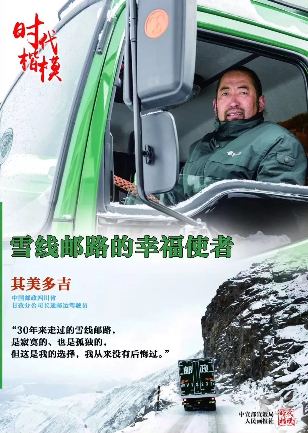 他愛崗敬業(yè),30年如一日,駕駛郵車在平均海拔3500米的雪線郵路上運送郵件,累計行駛里程140多萬公里,沒有發(fā)生一起責(zé)任事故。