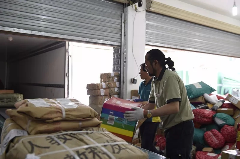 其美多吉在中國郵政甘孜縣分公司將郵件裝車(2017年8月27日攝)。新華社記者 吳光于/攝