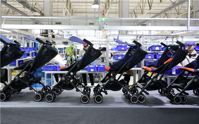 ↑1月24日,工人在江蘇昆山好孩子?jì)雰很嚳傃b廠裝配線上工作。新華社發(fā)(薛宏宇 攝)